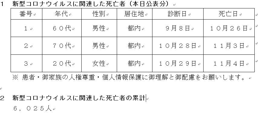 新型コロナウイルスに関連した患者の死亡について business Twitter Facebook はてブ Pocket LINE コピー 2022.11.07 この記事は約1分で読めます。 都内で新型コロナウイルスに感染した方が死亡されましたのでお知らせします。 お亡くなりになった方のご冥福をお祈り申し上げます。