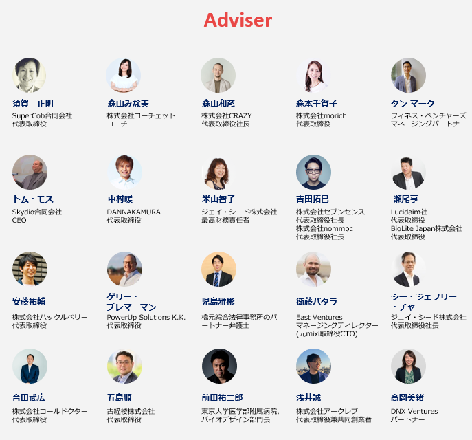 今回の「Antler Japan」設立にあたり、テクノロジーや医療、不動産、アート・カルチャーまで幅広い業界・業種の方にアドバイザーとして就任いただきました。