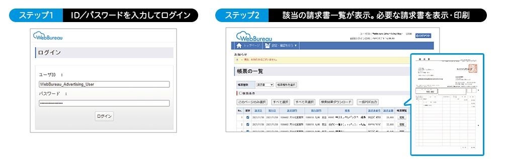 ※2電子請求書サービス(WebBureau)、導入以降の請求書が対象です。