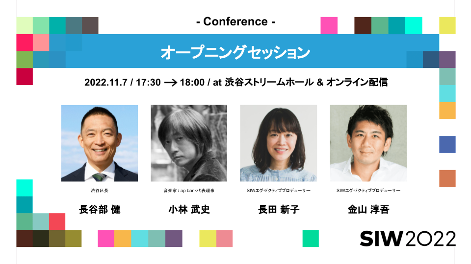 本日開幕したSIWは、産官学民が連携したプロジェクト発表を始め、今押さえておくべきキーワードを深堀りするカンファレンスや、アイデア会議、そして誰でも参加できるエクスペリエンスなど、総勢250名、120以上のプログラムを渋谷の街から発信していきます。