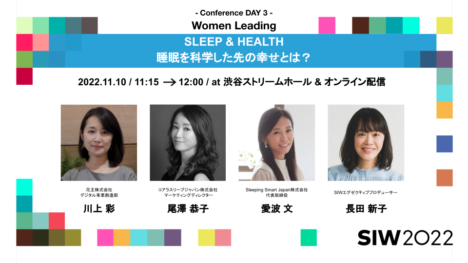 睡眠を科学して女性の活躍を支えよう!人生の1/3を占めると言われている「睡眠」を、科学的なアプローチと実践的な経験や海外動向なども含めて、それぞれの分野の知見をもとにクロストークします。