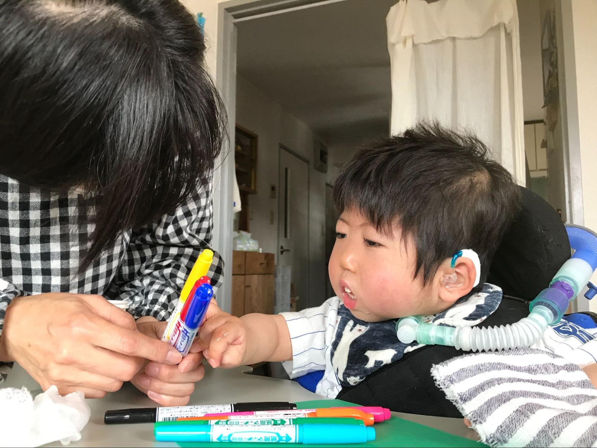 ナンシーはたんの吸引、経管栄養、経鼻栄養、胃ろう、腸ろうなど医療的なケアの必要な子どもたちの自宅に看護師が訪問し、医療的なケアに加えてお子さんの発達に合わせた、遊びや学びの支援を行う事業です。