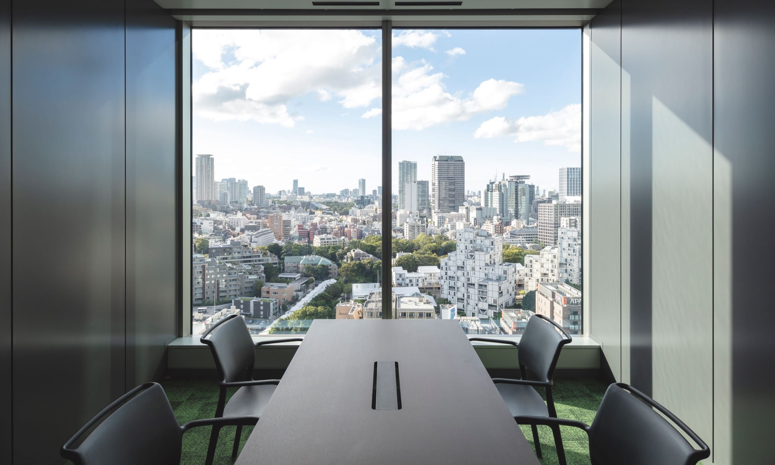 また、会議スペースは、都会の喧騒を眺めながらクリエイティブな発想とディスカッションを交わすスペースを意識した設計。個室にも開放感のある空間を作り出すことで、未来を育むための価値ある発想を促します。