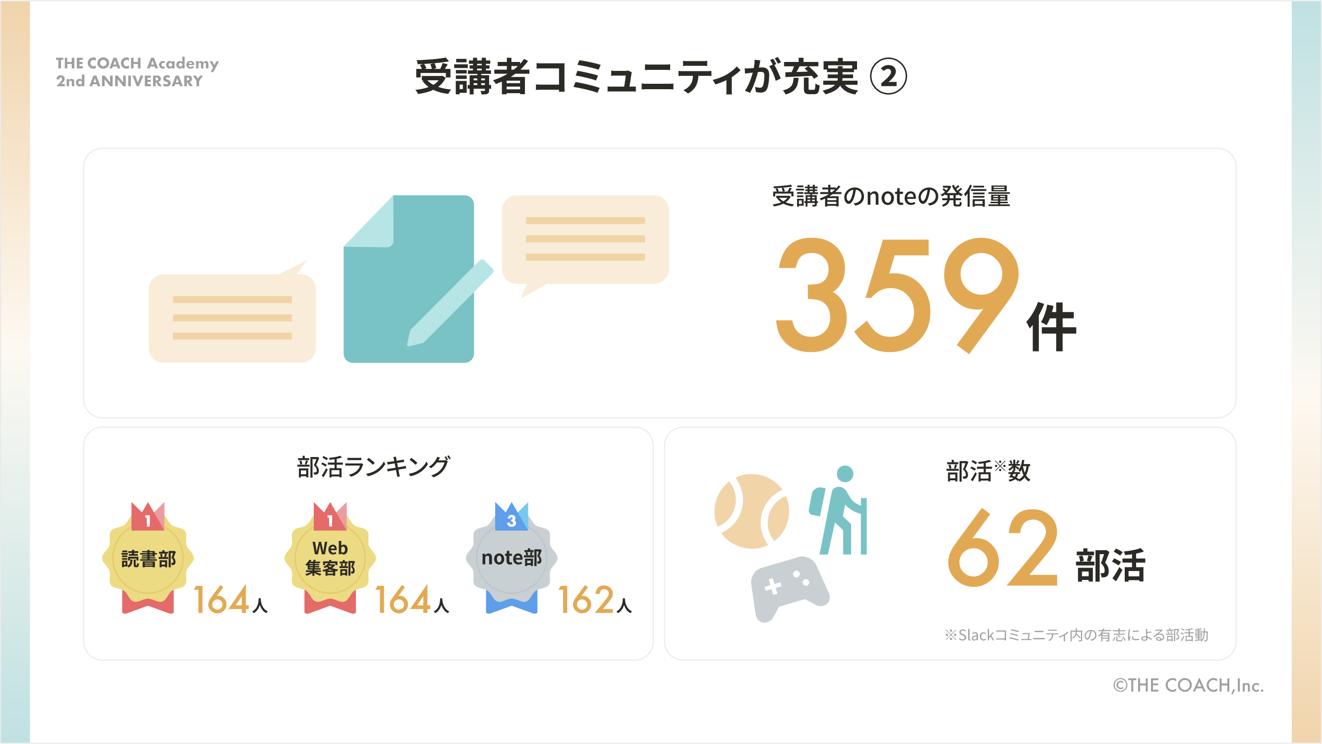 これを記念して、THE COACH Academyの2年の歩みを振り返るインフォグラフィックスを公開しました。