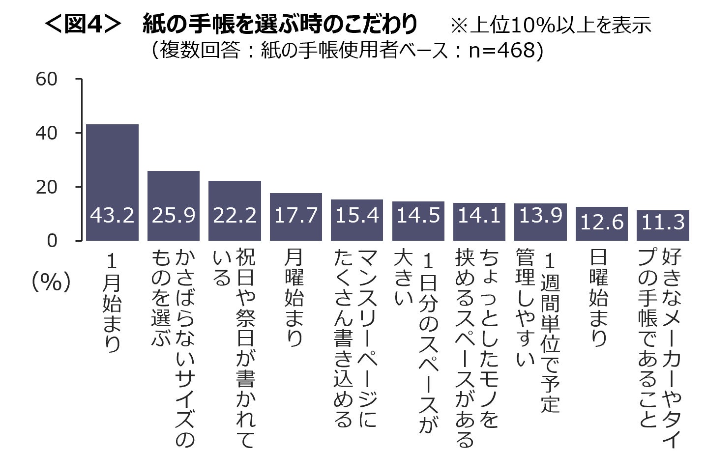 「1月始まり」の紙の手帳を選ぶ人は43.2%と最多。 <図4>