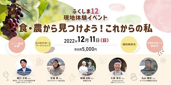 (公財)福島イノベーション・コースト構想推進機構 ふくしま12市町村移住支援センターは、12市町村への移住にご興味をお持ちの方に向け、福島12市町村の暮らしを先輩移住者とともに体感できる企画「ふくしま12現地体験イベント」を開催します。