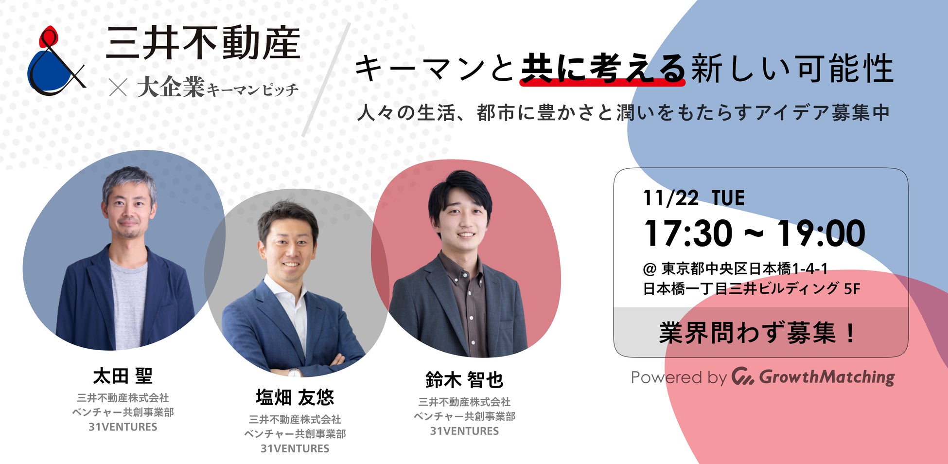 2022年11月22日(火) 17:30〜日本橋にて三井不動産「大企業キーマンピッチ」イベントを開催いたします。