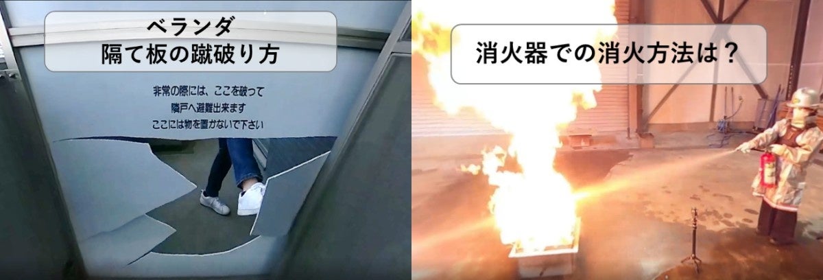 従来の消防訓練で一般的に行われる内容として、水消火器を使った消火訓練や階段を使った避難訓練などがありますが、より実践的な内容として「実際の消火器を使って消火訓練をしてみたい」「ベランダからの避難方法として避難ハッチを使ったり、隔て板を実際に蹴破るなどの訓練を行いたい」などの意見も多くありました。しかし、これらを実際にマンションの敷地内で実施するには、場所の手配や居住者との調整、ベランダの隔て板や消火器といった消耗品をどうするかなど、さまざまなハードルがあります。