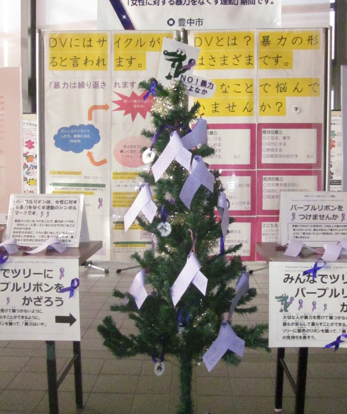 ・〈参加型展示〉ツリーにパープルリボンを飾り、「暴力はいや」の気持ちを伝えよう