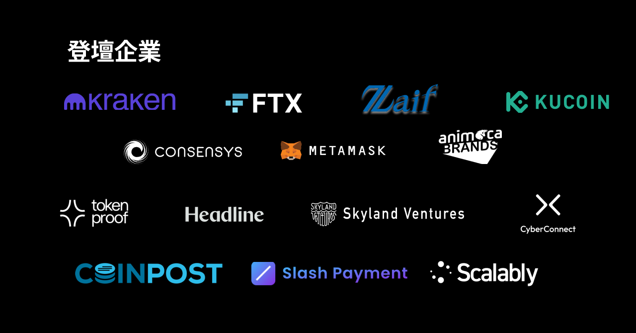 ConsenSys (MetaMask)、FTX、Kraken、KuCoin、Zaif、Animoca Brands、Headline Asia、Skyland Ventures、tookenproof、CyberConnect (LINK3)、Slash Web3 Payment、CoinPost、Scalably、他