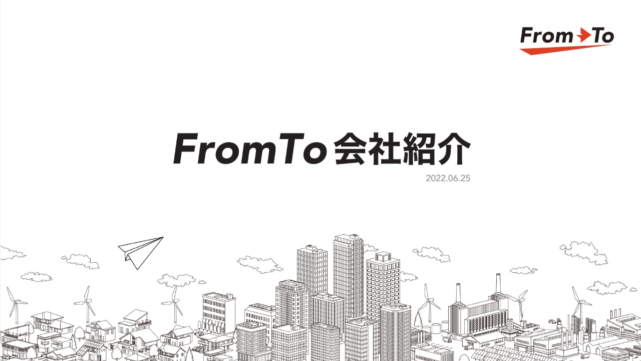 弊社の事業や社内の様子もひと目で伝わるように会社紹介資料 (https://www.docswell.com/s/FromTo/Z7XL2Z-2022-11-09-205154)を公開しています。 シード期のスタートアップである弊社は、スキルセットだけではなく、個人の価値観やビジョンへの共感を重要視しています。