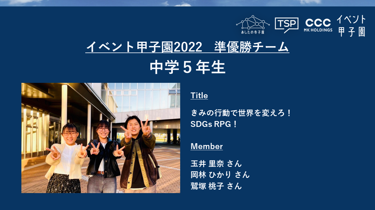 - 準優勝チーム 「きみの行動で世界を変えろ!SDGs RPG!」