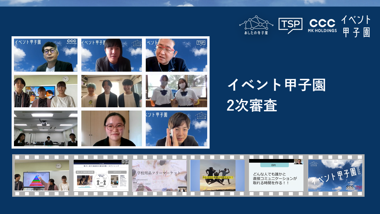 2次選考により選出された上位2団体考案のイベントは、2023年1月以降に実施予定です。今回の運営会社3社で質の高いサポート体制を整え、高校生たちと共に準備を進めてまいります。イベントの詳細の準備が整い次第、改めてプレスリリースをさせて頂きます。