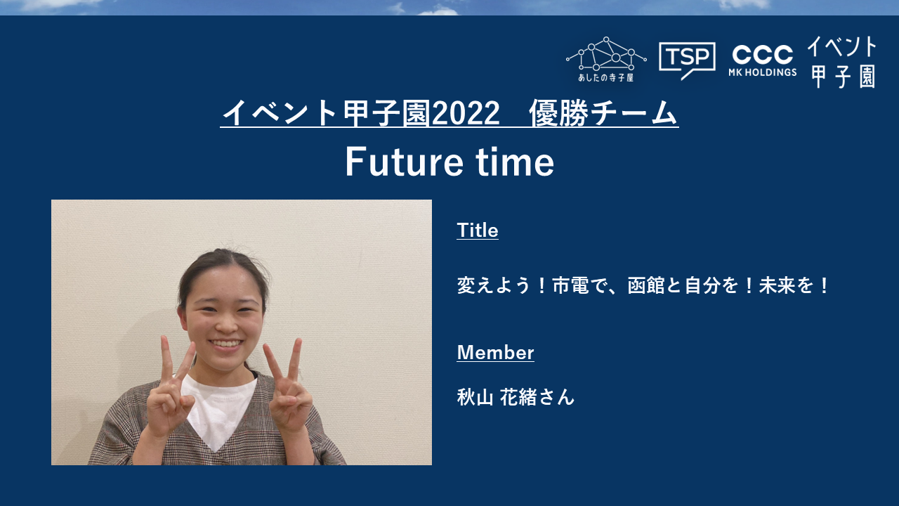- 優勝チーム Future Time「変えよう!市電で、函館と自分を!未来を!」