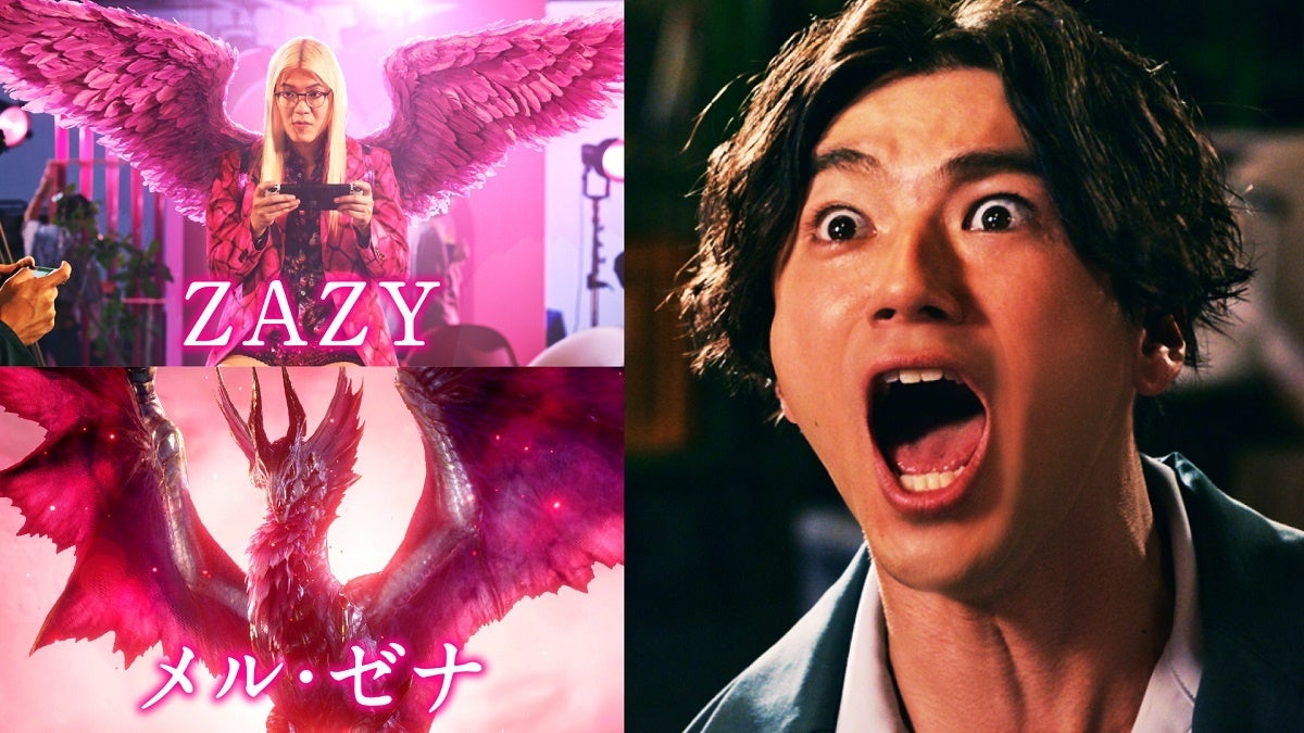 「モンハン」シリーズを毎回発売前に予約するなど、筋金入りの「モンハン」好きを公言しており、特設サイトでは『モンスターハンターライズ:サンブレイク』の開発現場への潜入取材を通して本作の魅力をお届けしている山田裕貴さん。新CMでは、そんな山田さんが「モンハン」のモンスターになりきる姿や、ゲームをプレイする姿を見せます。さらに山田さんは、おなじみの翼を身に着けたZAZYさんが新しいモンスター「メル・ゼナ」に見えてしまい、腰を抜かしながら「メル・ゼナァァァァ!!」と絶叫します。