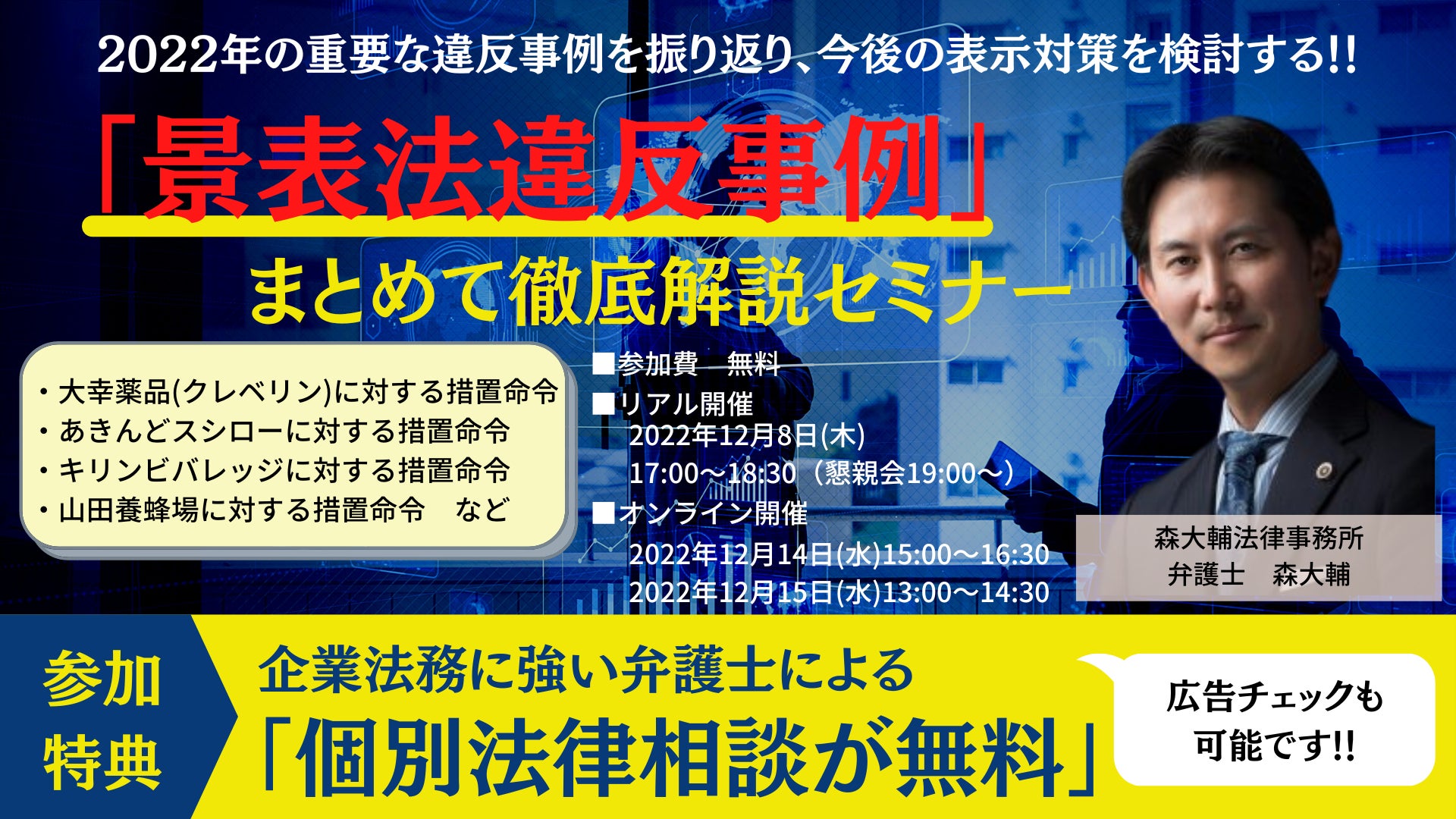 今年の重要な違反事例を振り返り、今後の表示対策を検討するとともに、景品表示法の基本的な知識を学びなおしましょう!