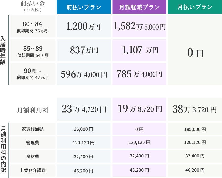 ソナーレ・アテリア大泉学園では、「入居金なし月払いプラン」と「基本プラン」と「月額費用を抑えたプラン」をご用意しています。