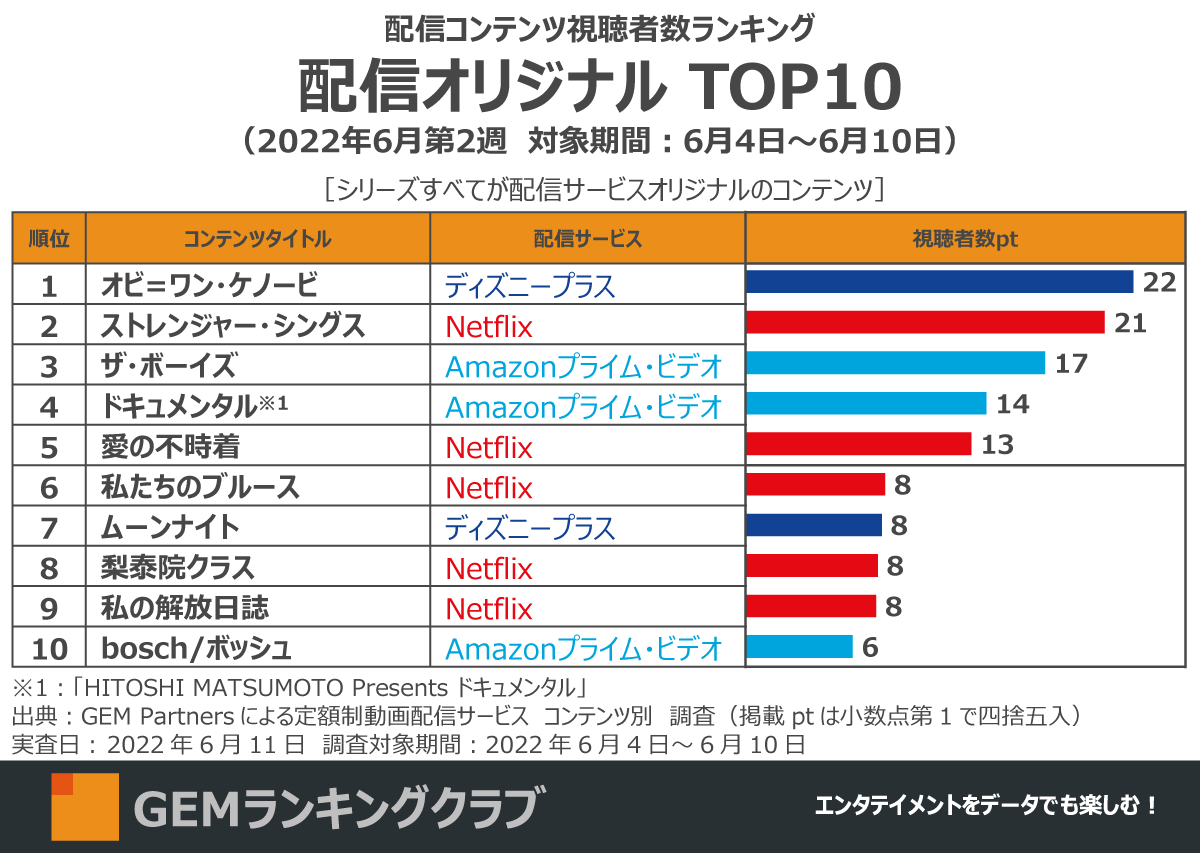 ■ 配信オリジナルTOP10:各配信サービスの海外ドラマがひしめくなか『オビ=ワン・ケノービ』が首位獲得
