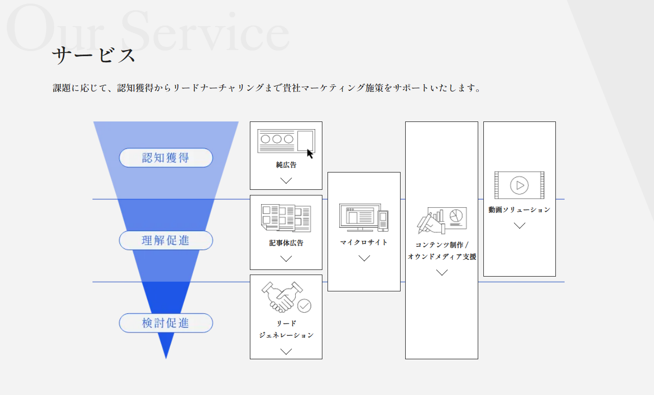 課題に応じて、認知獲得からリードナーチャリングまでマーケティングをサポートいたします。