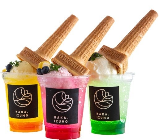 今年2月にオープンしたばかりの「KAKAIZUMO」。島根土産としても有名なお菓子を作る中浦食品が運営するスイーツ複合ショップです。店内では地元の素材にこだわって作られたジェラートも提供されています。カラフルなソーダとジェラートが合体した「ジェラートオンソーダ」は、お店の自信作。写真映えすること間違いなしです。