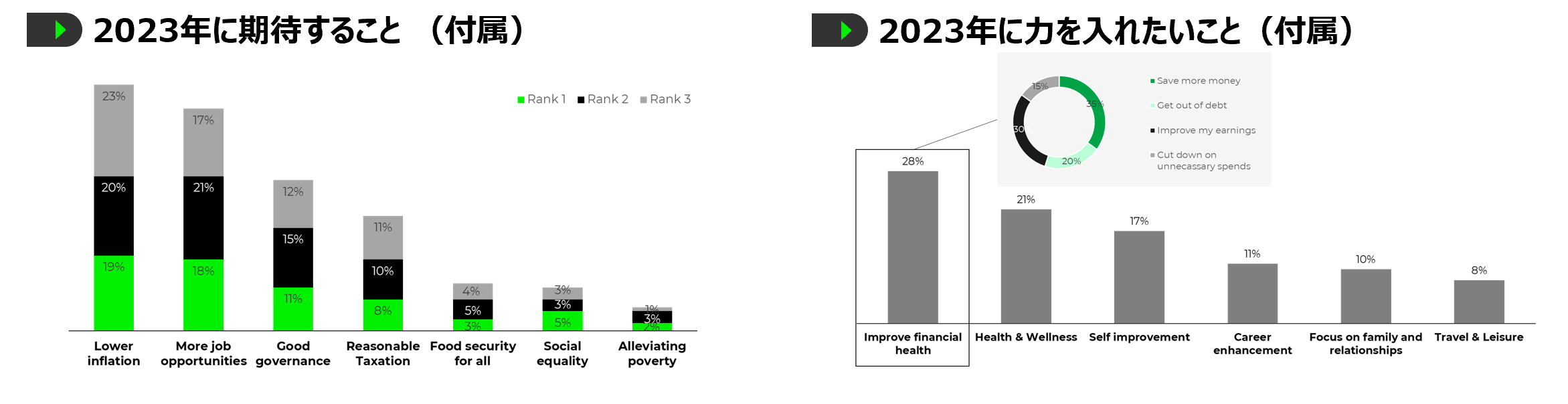 申し込まれたカスタム質問に加え、基本的なデモグラフィック情報と「2023年の期待」が付属。今の消費者が何を期待し、やりたいことは何なのかが把握できます。