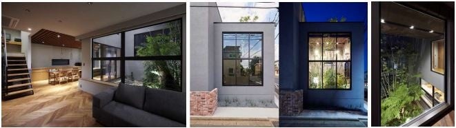 住宅密集地にある2階建てです。所有地は交通量の多い2つの道路に接し、昼間は常に車や歩行者が多いため、都市型の問題・プライバシー・騒音対策が必要でした。室内を普遍的に豊かな内部空間するため、ライトコートを 設けました。 それは騒音の問題を解決し、かつプライバシーが露出しないための装置となります。人の少ない夜間にはライトコートの植栽の豊かな景色を街並みへ寄与します。