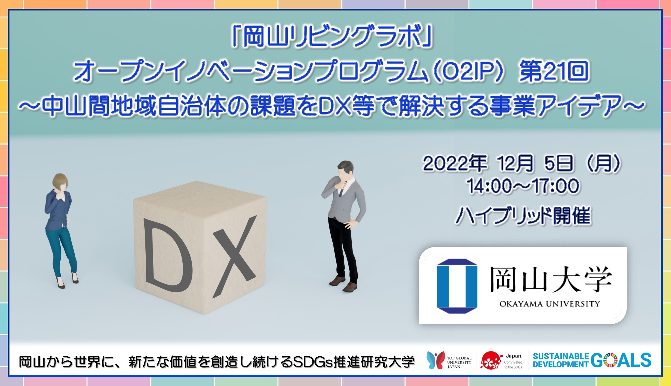 【岡山大学】第20回「岡山リビングラボ」オープンイノベーションプログラム(O2IP)「高齢者向け運動プログラムの普及につながるアイデア」〔11/14月,ハイブリッド開催〕