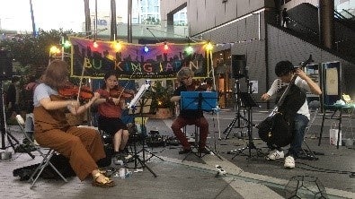 ステージでは日替わりライブでアーティストが登場し、弦楽器やサックス、ホイッスルなどによる生演奏を実施します。