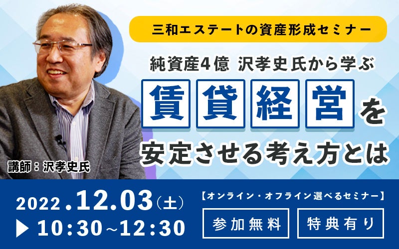【 講演内容 】 純資産4億 沢孝史氏から学ぶ賃貸経営を安定させる考え方とは