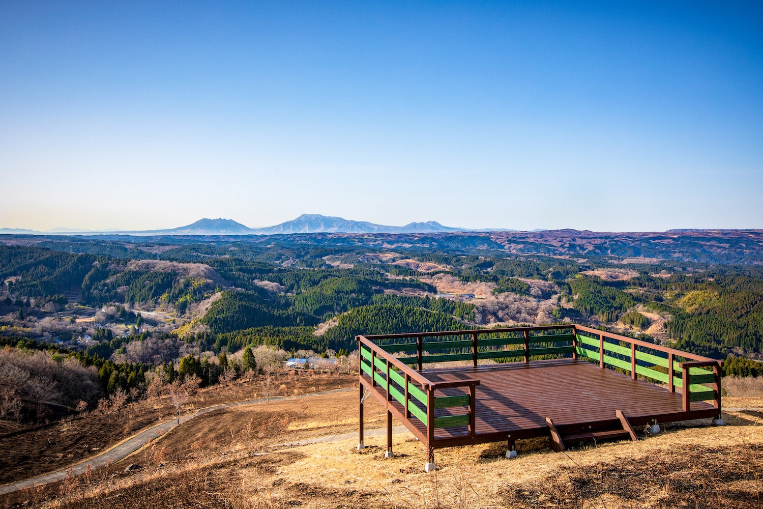 【南小国町】小萩山の草原テラス。遠く阿蘇五岳を望む絶景の草原にテラスが完成しました。