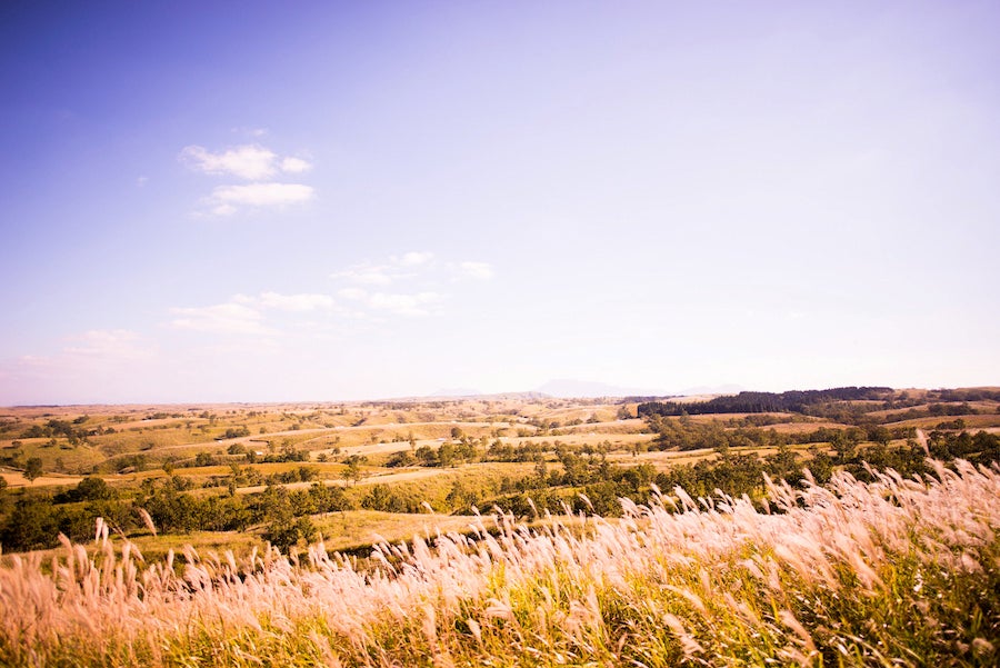 【南小国町】押戸石の丘。360度パノラマの草原景観を楽しめます。一面にススキが広がる景色は圧巻です。