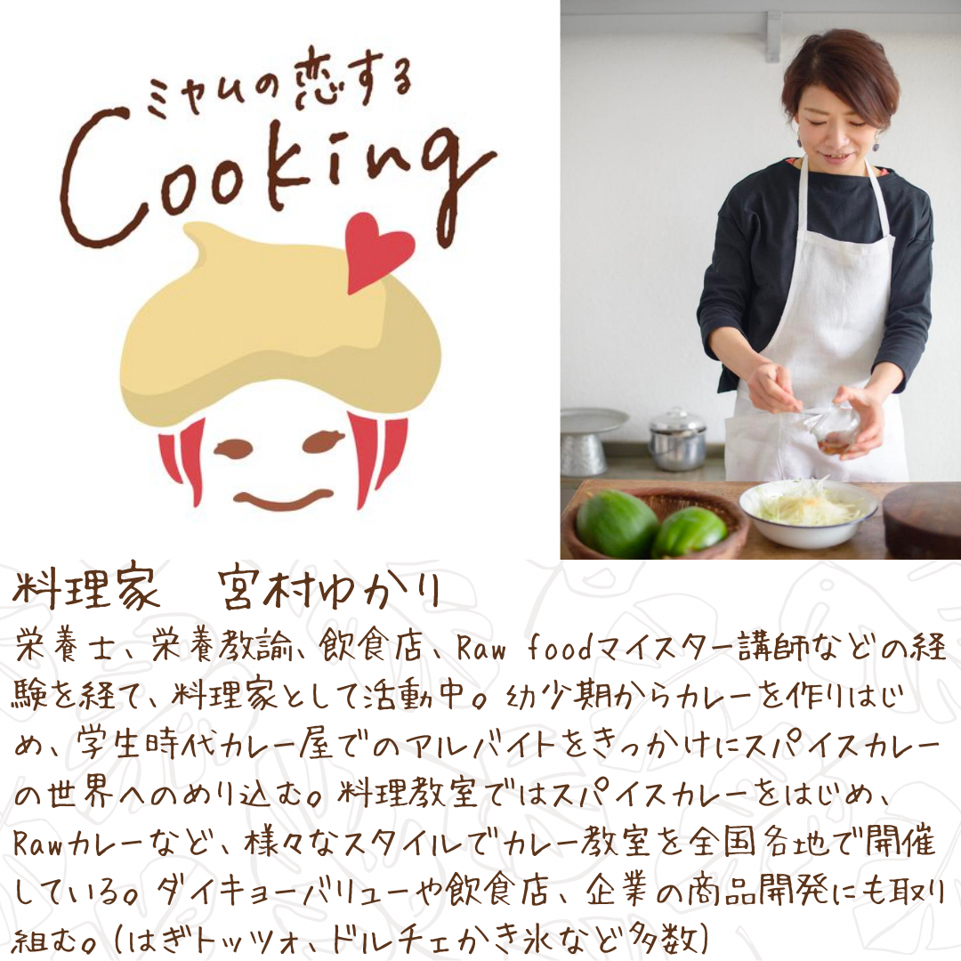 料理家。栄養教諭、企業での商品開発、オーガニックカフェ勤務等を経て、「ミヤムの恋するcooking」を主宰。