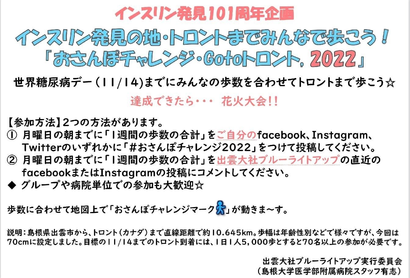 世界糖尿病デー企画として、2022年10月7日から実施中の「おさんぽチャレンジ2022」