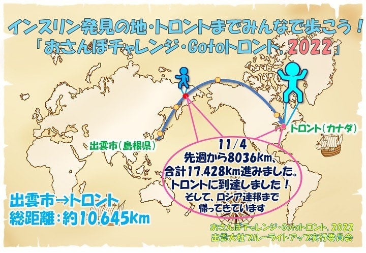 世界糖尿病デー(11/14)までにみんなの歩数を合わせてトロントまで歩こう☆
