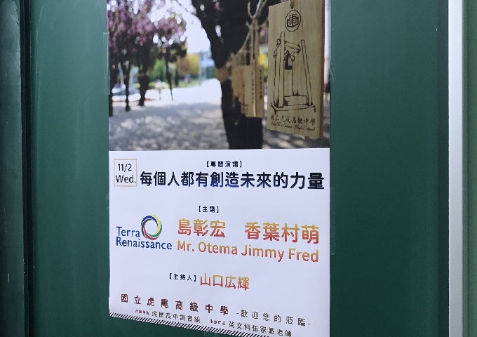 今後は、テラ・ルネッサンスが提携している学校法人東明館学園(理事長:荒井優、所在地:佐賀県基山町)と虎尾高校の合同授業を開催し、日台の若者の交流、「平和の担い手」の育成を図る予定です。将来的には、日台の若者が共に地球規模の課題を学び、その課題解決に取り組んでいく平和教育を両地域で展開することを構想しています。本授業はその第一歩となるものでした。