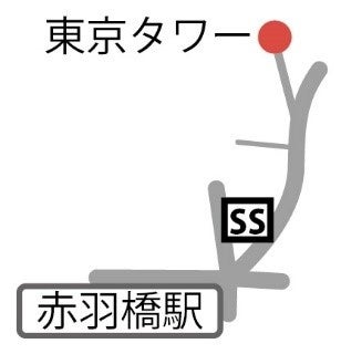 出口A7から桜田通りを約100m進み信号を左折します→赤羽橋駅から「東京タワーと公園」