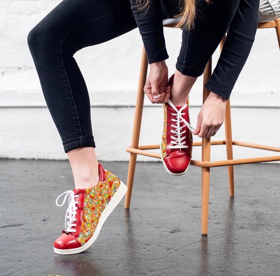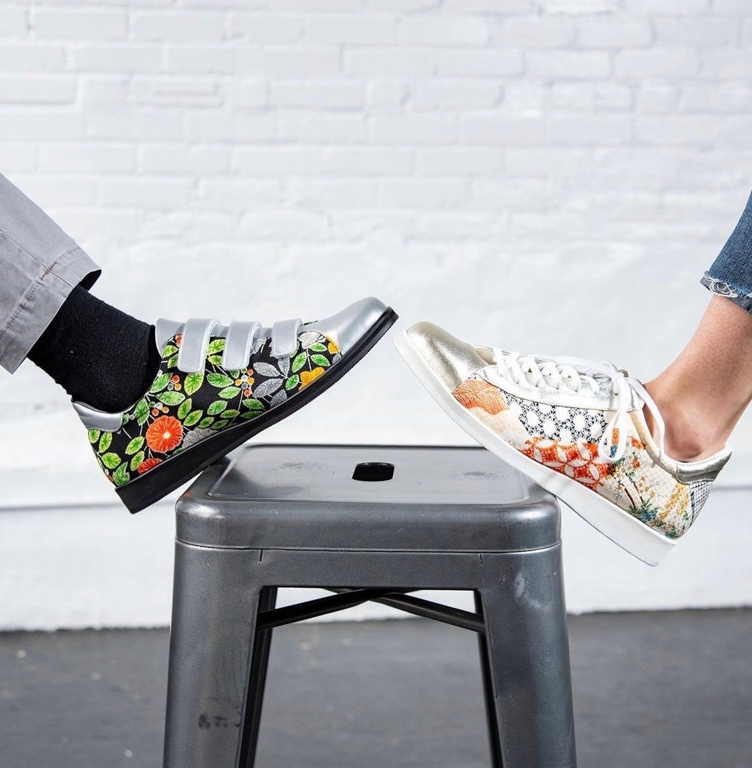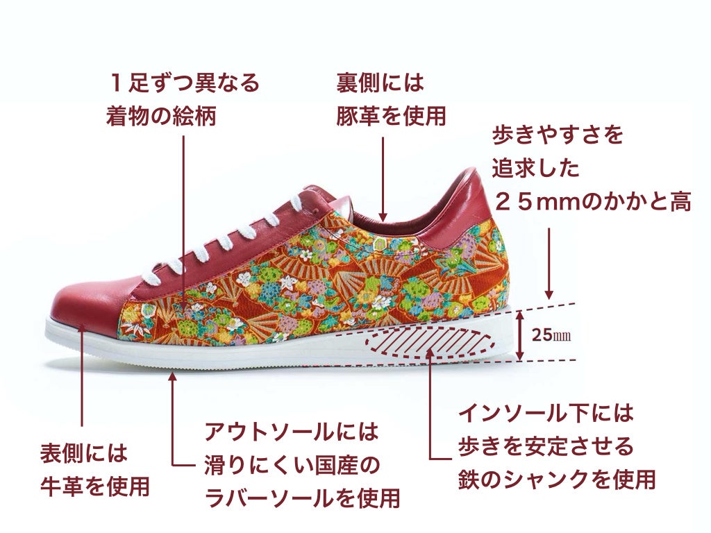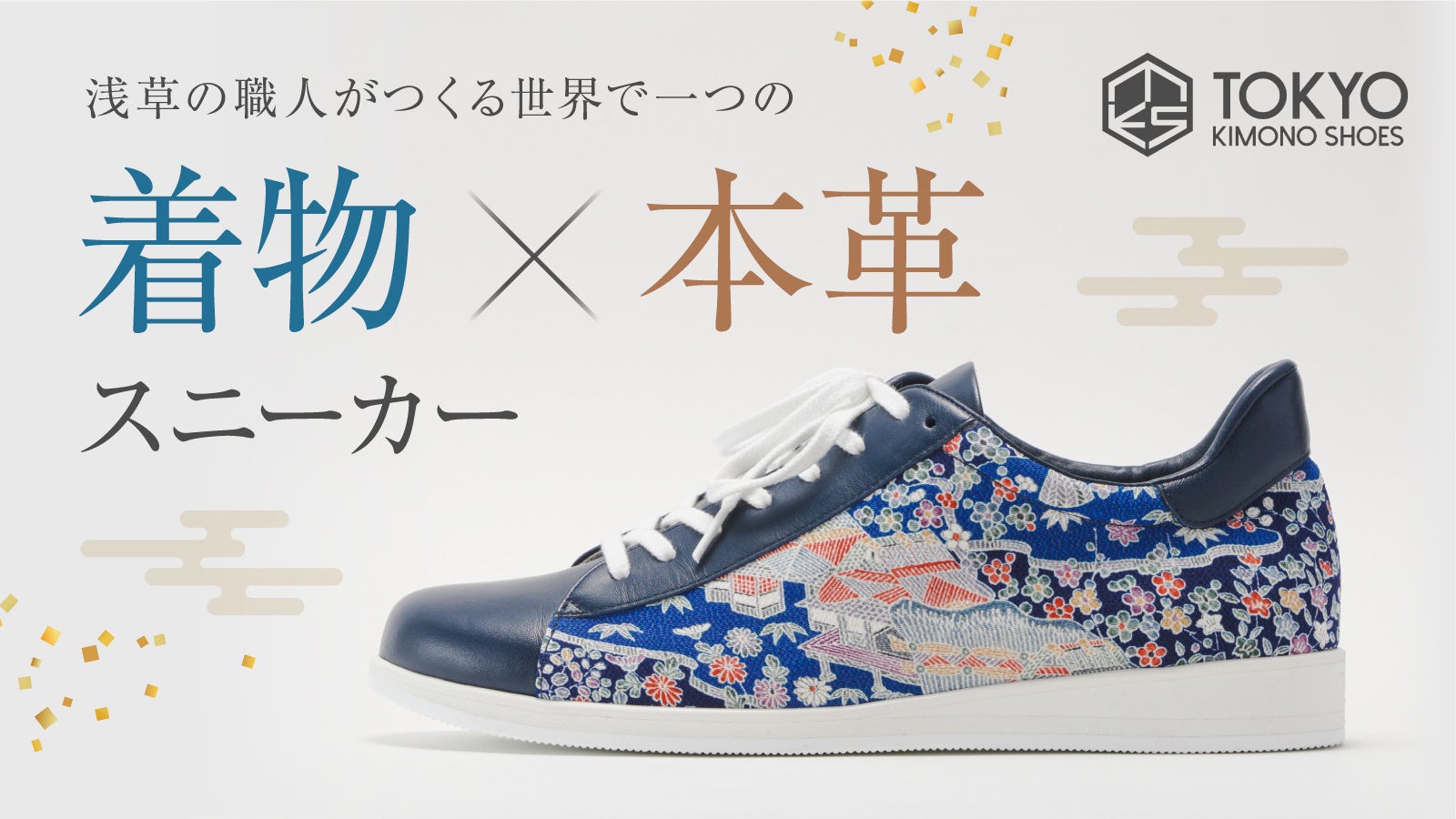 浅草の靴職人の技で、美しい着物と本革スニーカーを融合させたユニセックスの「着物×本革スニーカー」です。