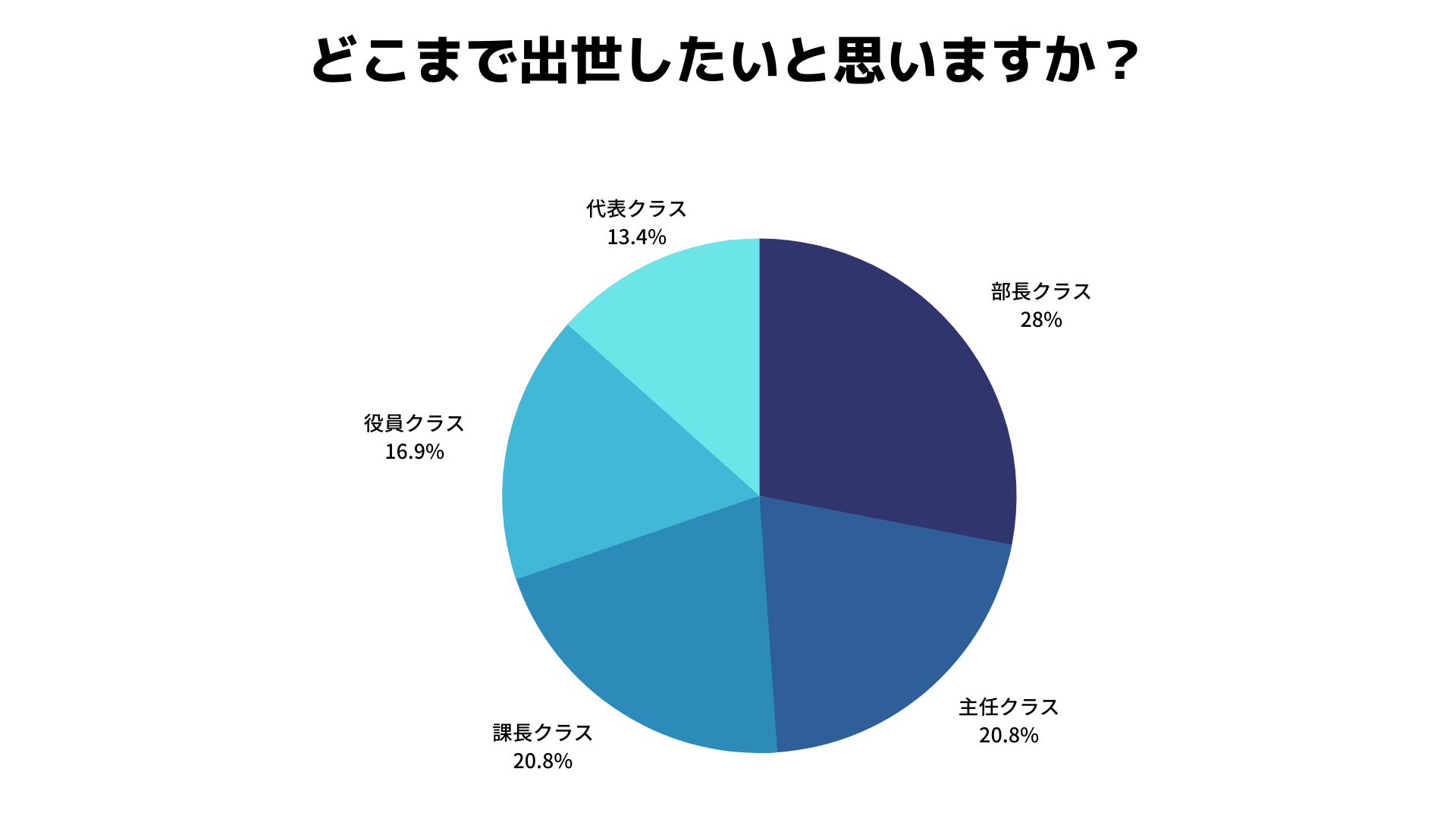 出世したい20代に対して、どの程度まで出世したいかをアンケートを取ったところ、課長クラス・部長クラス等の一般的に中間管理職と呼ばれるポジションを選択する方が多い結果となりました。