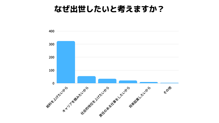 出世したい人の理由でもっとも多いのは、「給料を上げたいから」