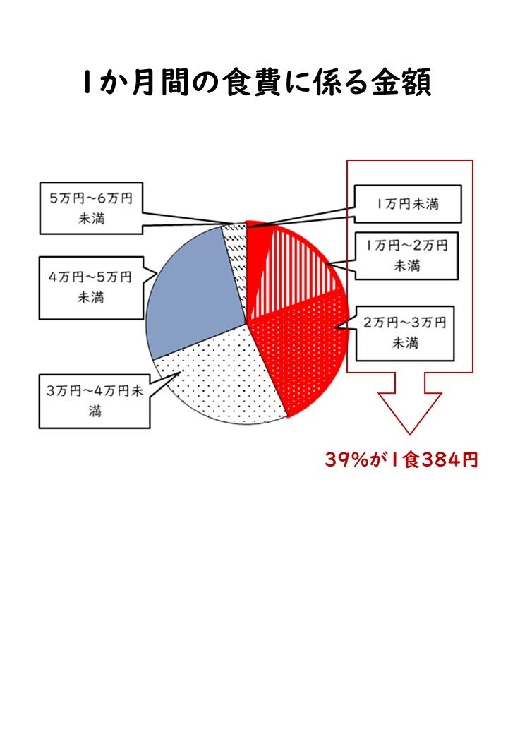 ④1人あたりの食費が384円/日と,かなり少額でやり繰りをしている回答者が約4割にものぼる。「炭水化物だけの食事が増えた」など、栄養バランスを犠牲にしてでも食費を抑制している者もいる