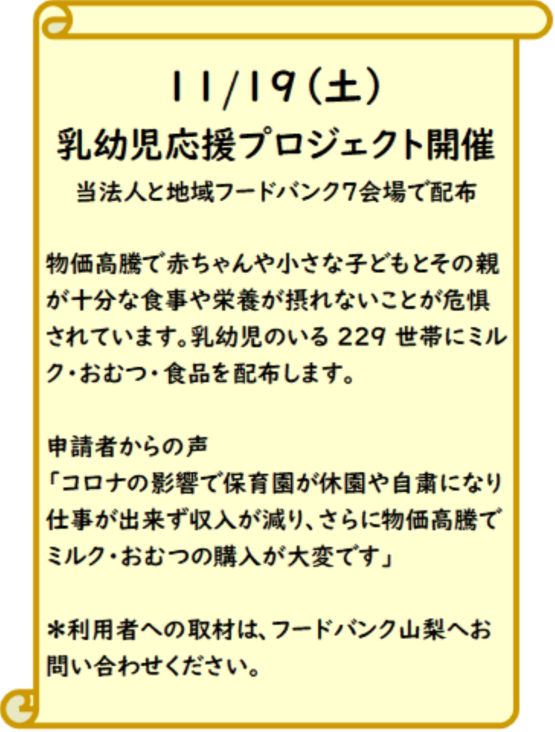 「第8回つながるスマイルプロジェクト」では、コロナ感染症の急拡大と物価高騰に対し、地域フードバンク7団体とともにコロナ禍や物価高騰の影響を受けた方に無料で食品をお配りしました。支援を受けた290世帯のうち115世帯のアンケート回答から深刻な影響が明らかになりました。報道各社の皆様には、調査結果の周知にご協力いただけることを願っております。詳細はお問い合わせください。