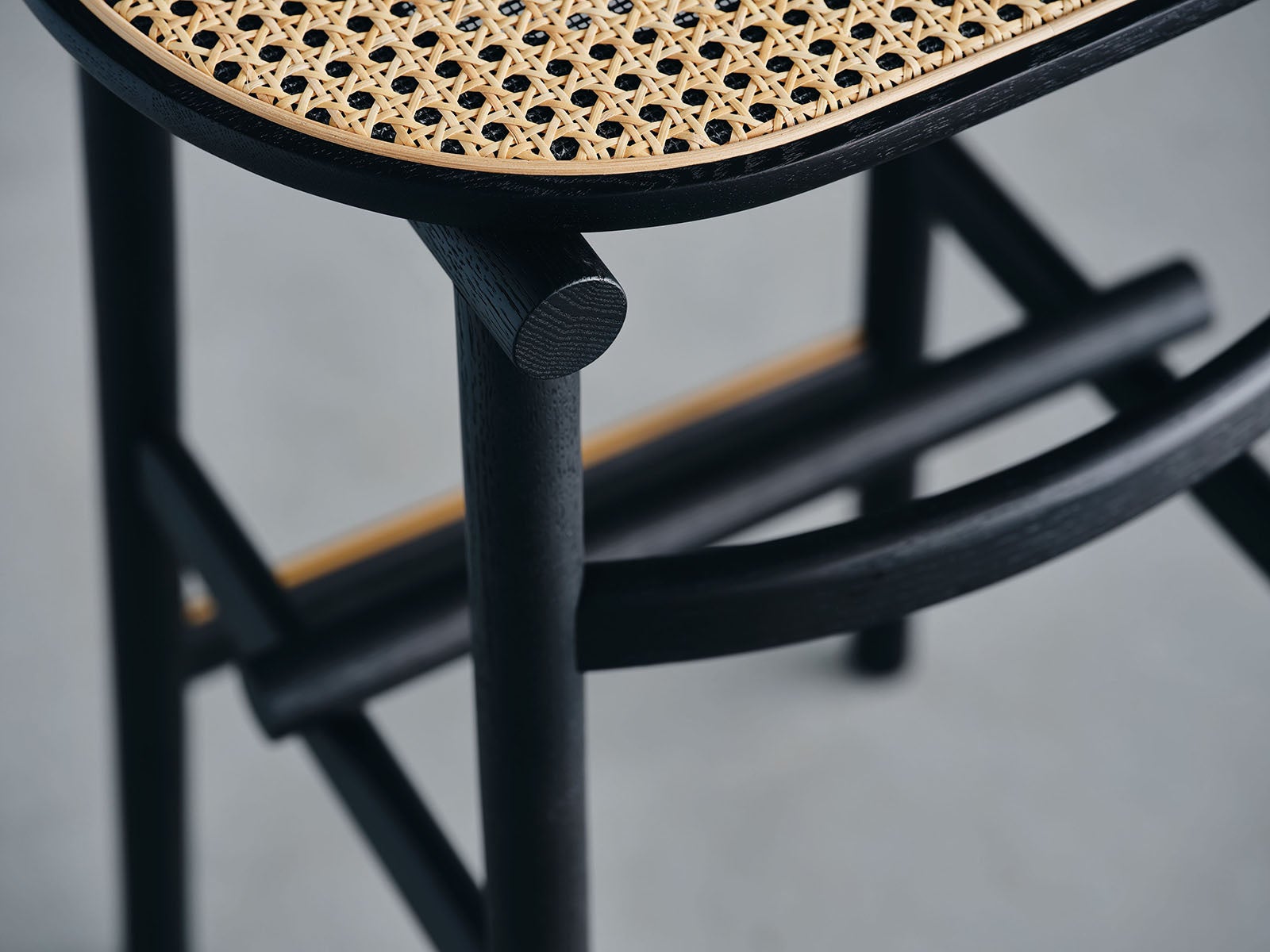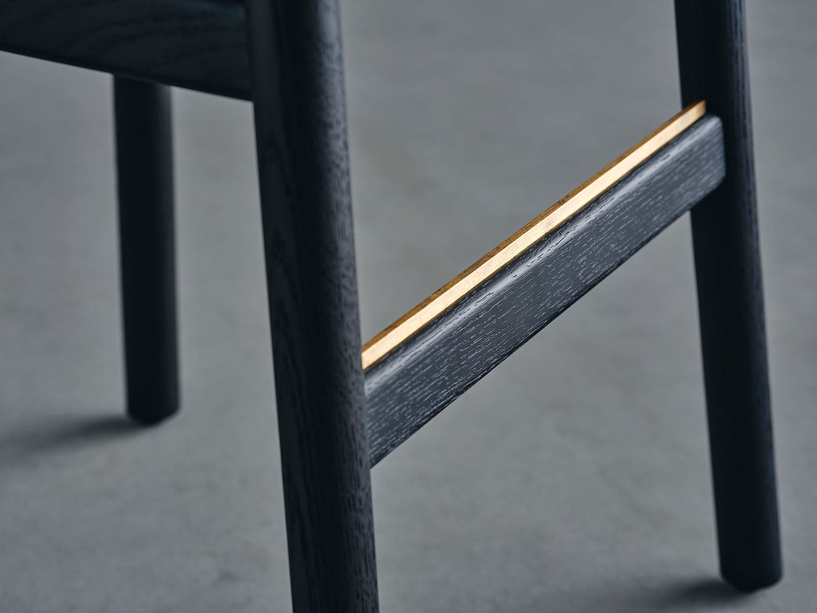 足掛け木部に埋め込んだ無垢の真鍮は木部の傷が入りにくくなるように設計しており、より実用性の高いバースツールとなっています。