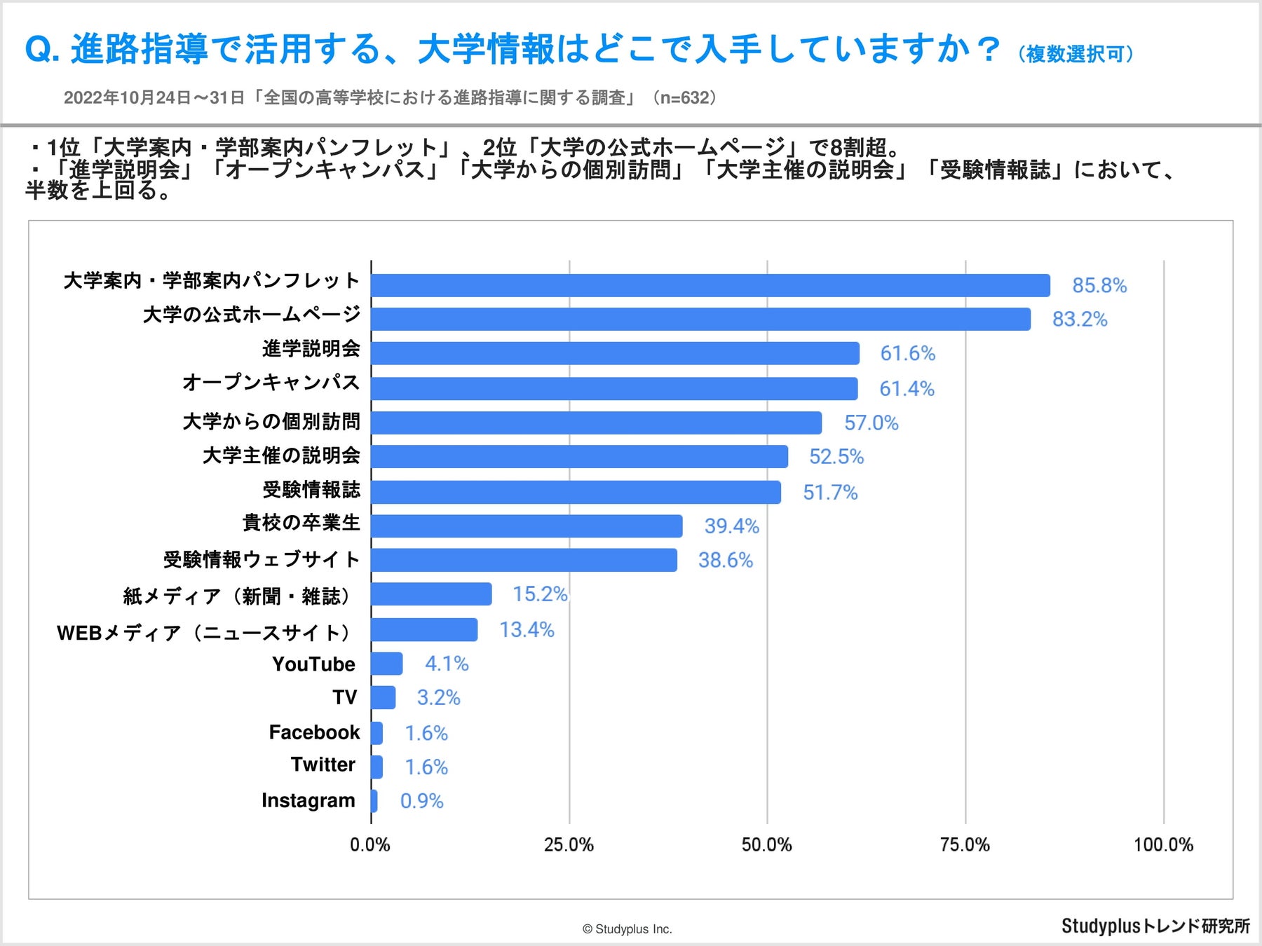 ・「進学説明会」「オープンキャンパス」「大学からの個別訪問」も6割前後の回答を得る。