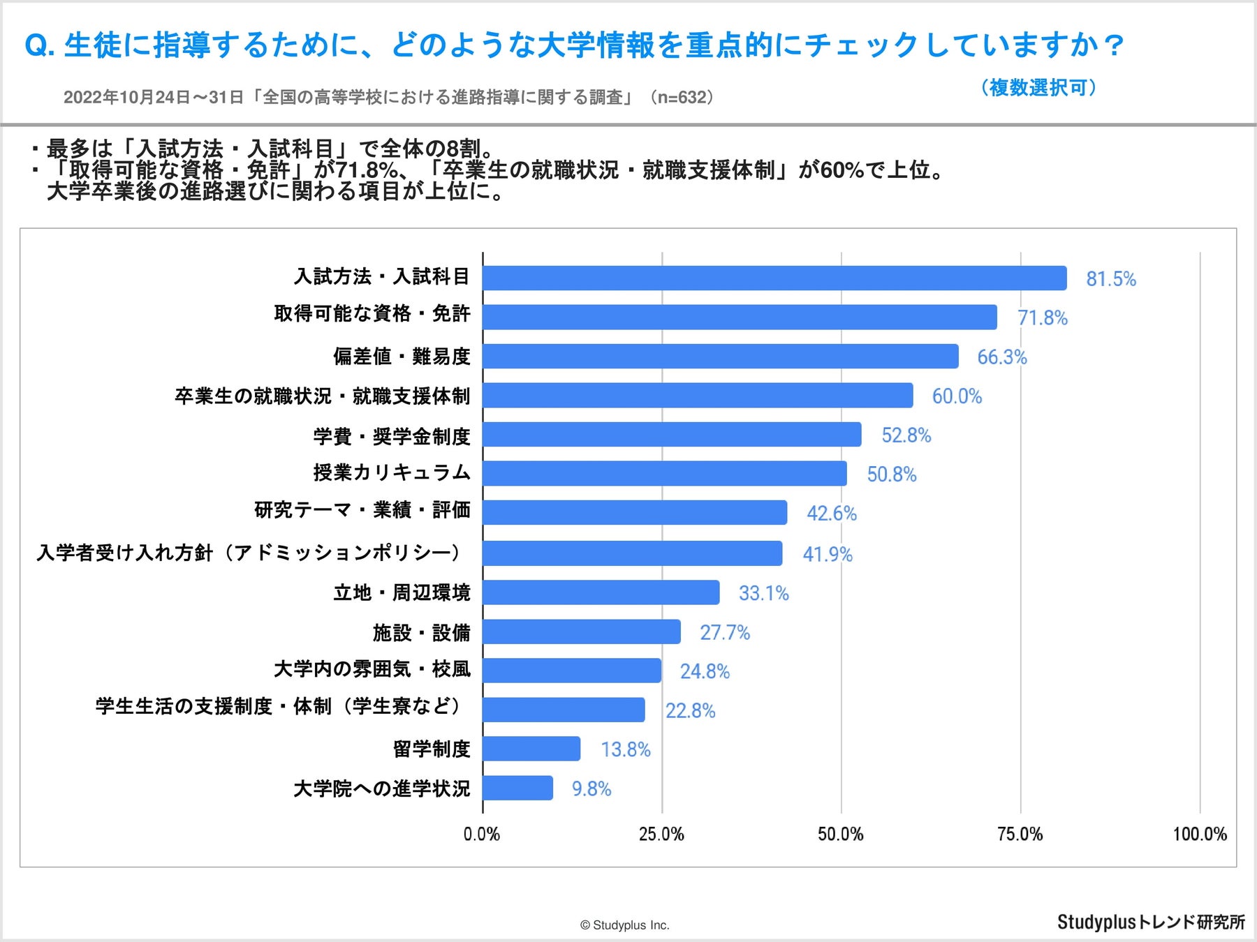 ・生徒に指導するために、どのような大学情報を重点的にチェックしていますか?(複数選択可)