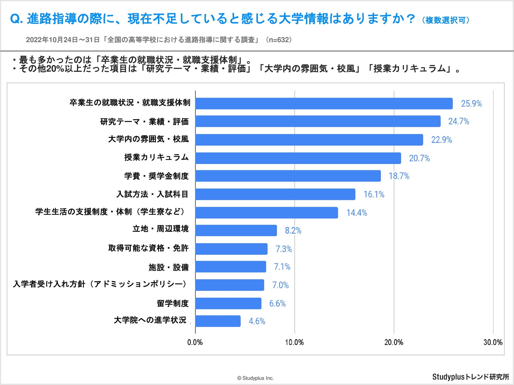 ・進路指導の際に、現在不足していると感じる大学情報はありますか?(複数選択可)