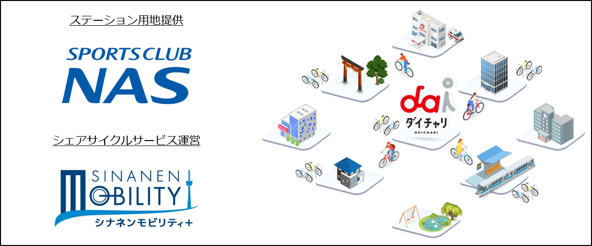 今回、初の試みとして戸塚店敷地内に「ダイチャリ」のステーションを設置し、健康的で利便性の高い移動手段としてシェアサイクルをご提案することで、スポーツクラブの付加価値を上げるとともに、店舗周辺の交通利便性の向上を図り、自転車運動機会の増加による更なる健康増進に寄与します。