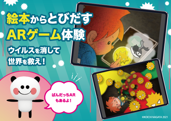 アイフリークスマイルズが運営する、500 冊以上の作品を収録する絵本アプリ「森のえほん館」で配信中の永田浩一氏作の人気ITリテラシー絵本シリーズ「おしたらおしまい」の絵本にスマホをかざすと、絵本からARゲームが飛び出すコンテンツをご用意しています。“絵本から飛び出したウイルスをタップで消して世界を救う!?”そんな、絵本の世界を体感できるようなARコンテンツです。