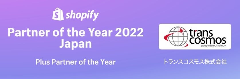 Shopify社が発表している「Plus Partner of the Year」は、最も大規模なプロジェクトを遂行し、かつ高い技術力とシームレスなコマース体験を提供することで、Shopify Plusマーチャントの成長を後押ししただけでなく、事業者から最高の評価を得たパートナーに贈られる賞です。トランスコスモスはShopify Plusパートナーとして、エンタープライズ向けとされるShopify最高位の契約プランである「Shopify Plus」の案件を最も多く獲得し、有名企業やブランドのEC構築や運用を通して多くのEC事業者の事業拡大に貢献したことが評価されました。