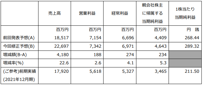 これにより、連結売上高が前回発表予想を大幅に上回る見込みとなりましたので、上記のとおり2022年12月期の通期連結業績予想を修正いたします。