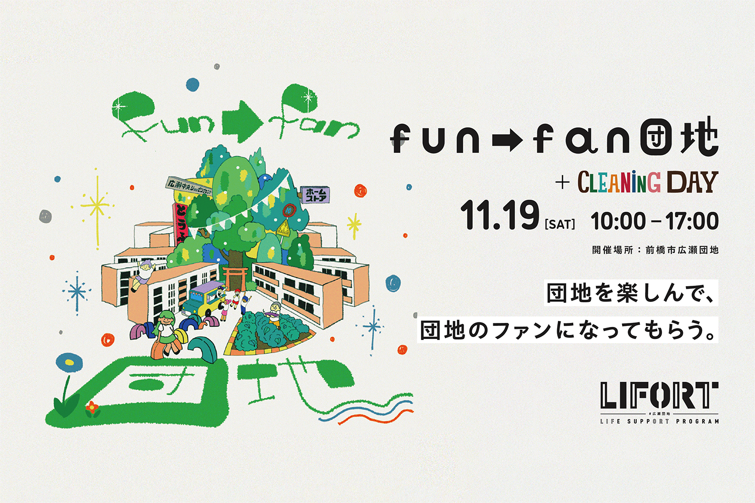 11月19日(土)に群馬県内最大規模の広瀬団地で【fun→fan団地】秋のイベントが開催されます。LIFORTプロジェクトでリノベーションを行ったシェアルームや広瀬団地内の公園、隣接する飯玉神社までを様々な出展者が装飾し1日限りの展示会を行います。